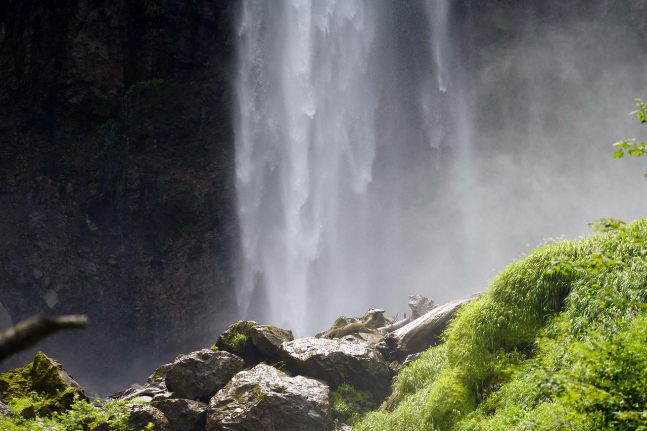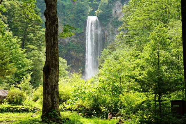 豪快に流れ落ちる滝水でマイナスイオンたっぷり!