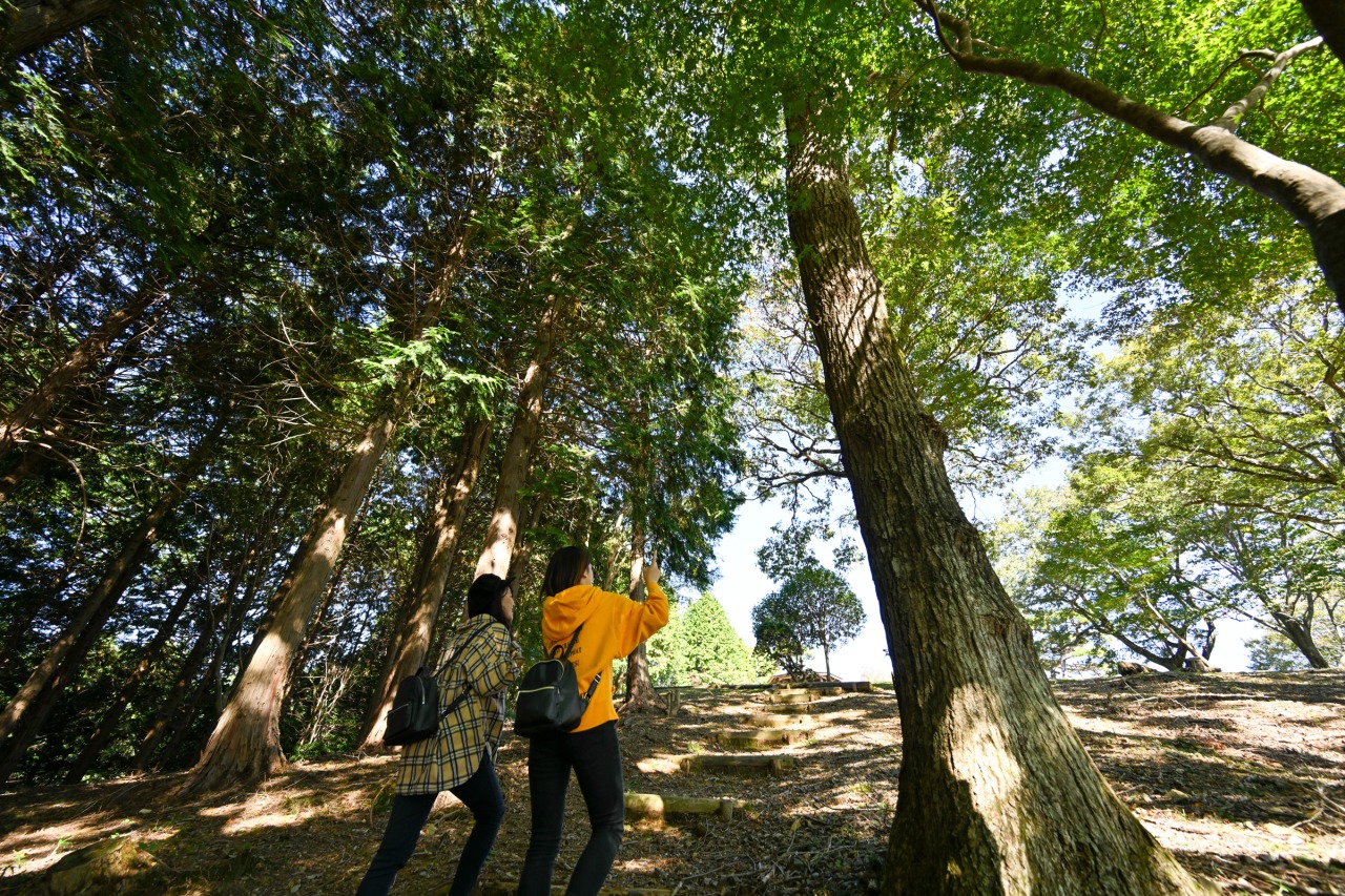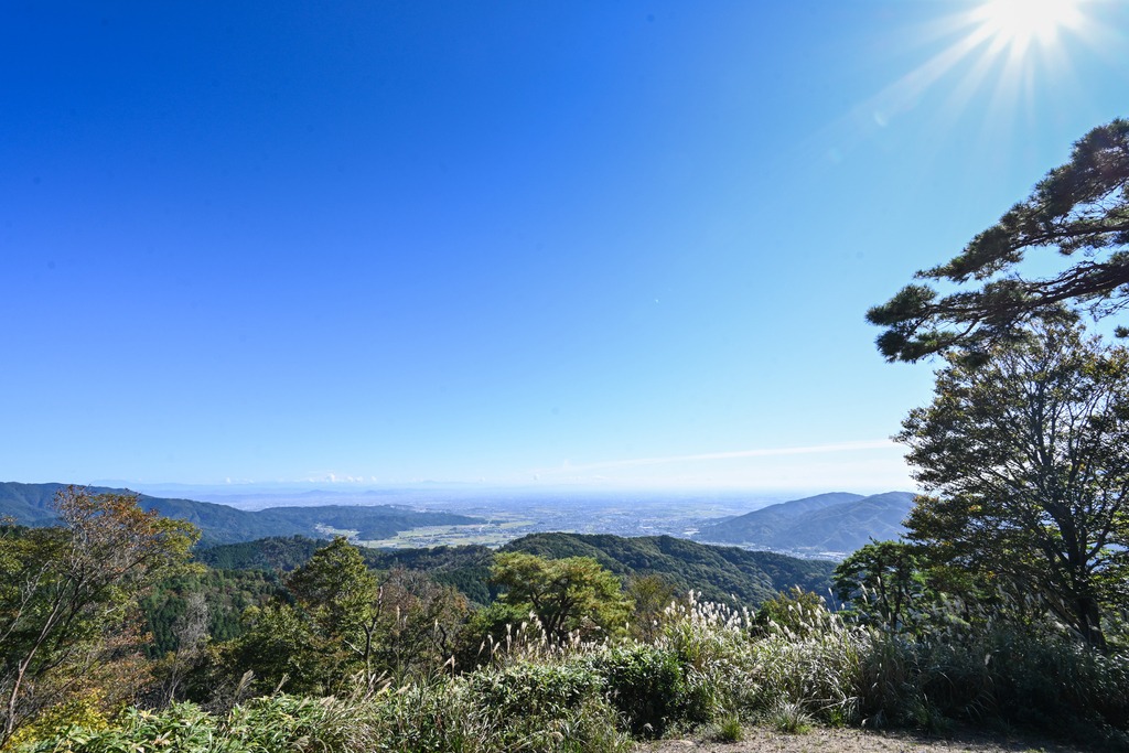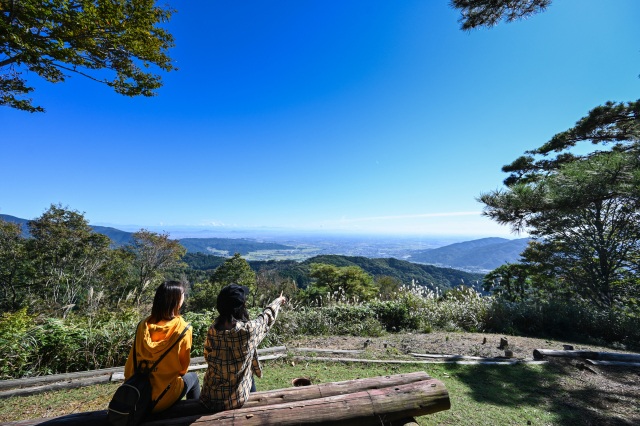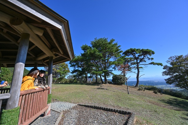管理棟にある第一駐車場までは車で登ることができ、小道を少し上がったところにあるふれあいの広場からは、濃尾平野の豊かさ…まるで天下を取ったかのような気持ちよさが味わえます。