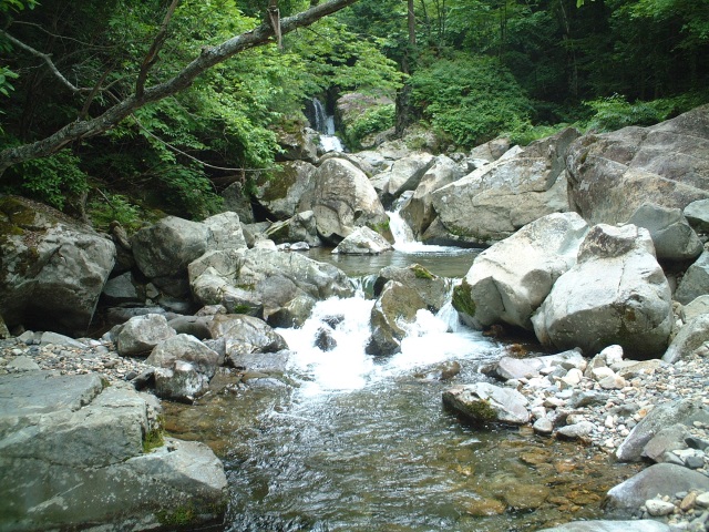 「イノシシ滝」はその二又川の上流に位置し、カクレハ高原キャンプ場より徒歩30分で行くことがあります。