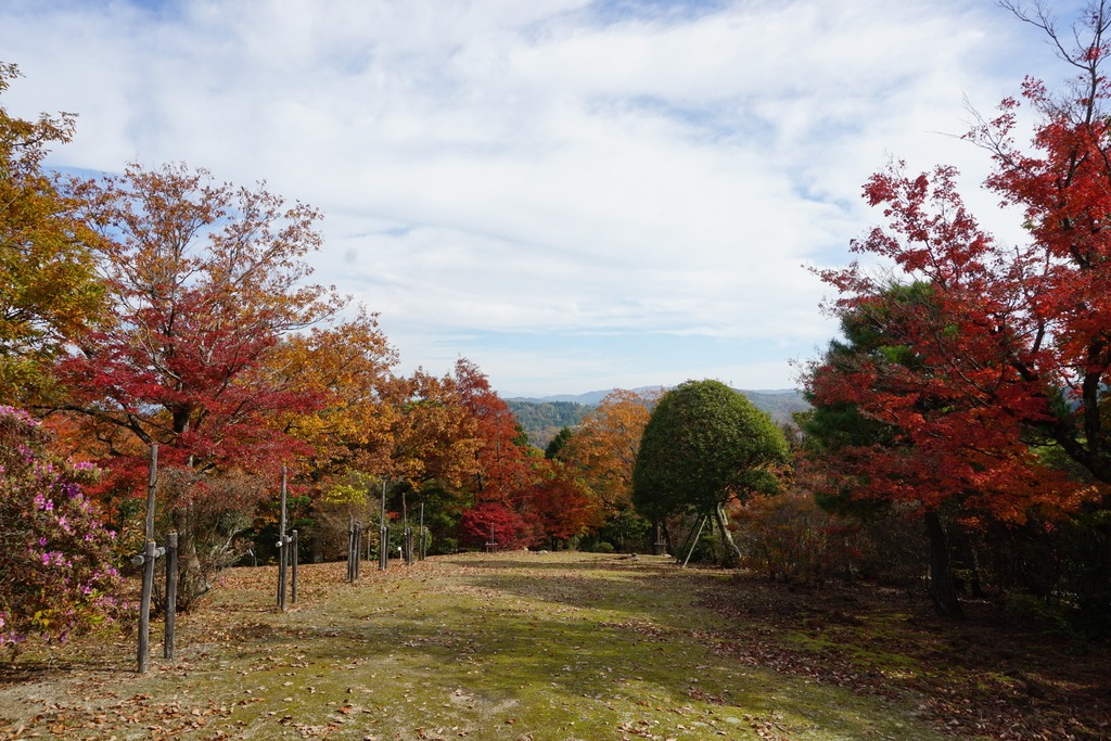 山林の中には遊歩道があり、薬草園を抜けて展望台へ行くと、中央アルプス、御嶽山、白山、そしてはるか伊勢湾が見渡せます。