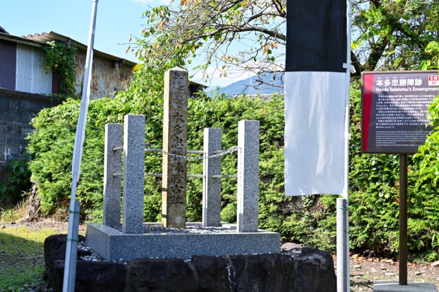 その忠勝の陣跡は「十九女池」の西側に位置するところあり、関ケ原の合戦では軍監として参戦し、松平・井伊隊が対戦していた島津隊に向かって進撃し共に戦いました。