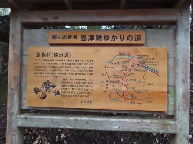 島津豊久公は、残兵の助けを借りながら伊勢西街道「勝地峠」を越えました。