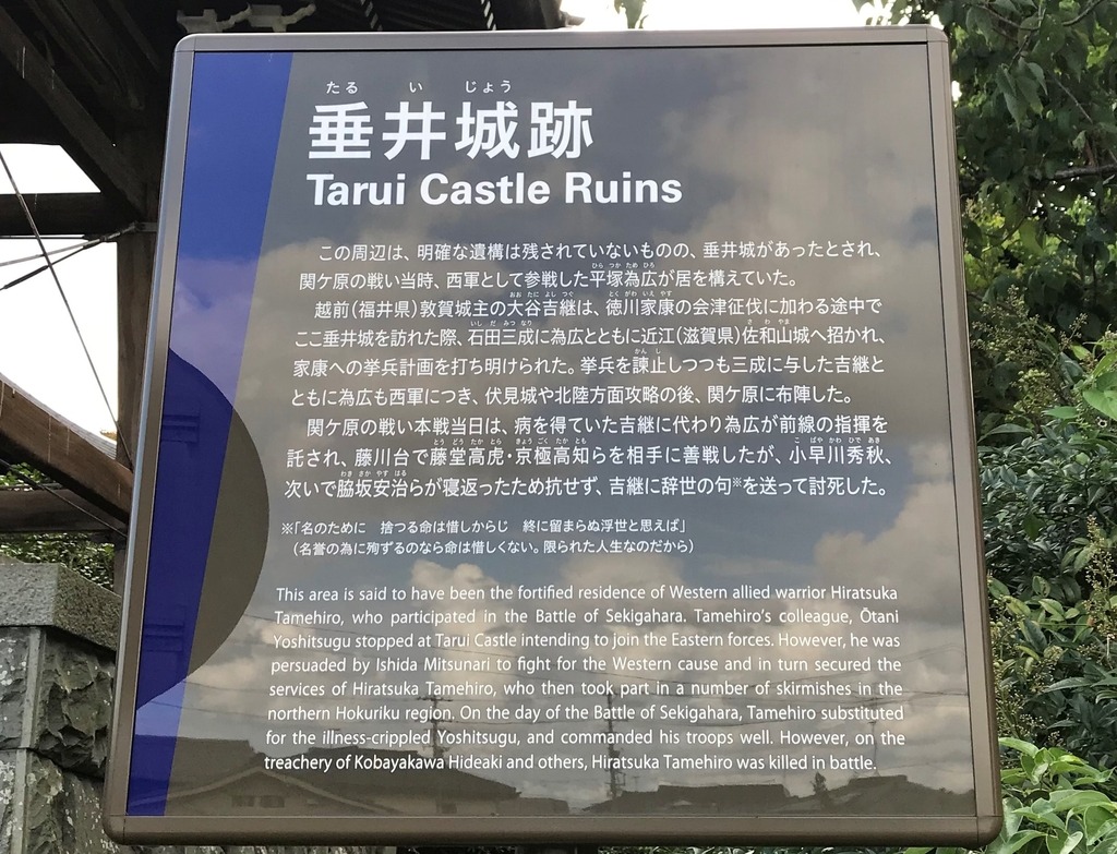 垂井城主の平塚為広公は、大谷吉継の配下として関ケ原の合戦に西軍として参戦する。