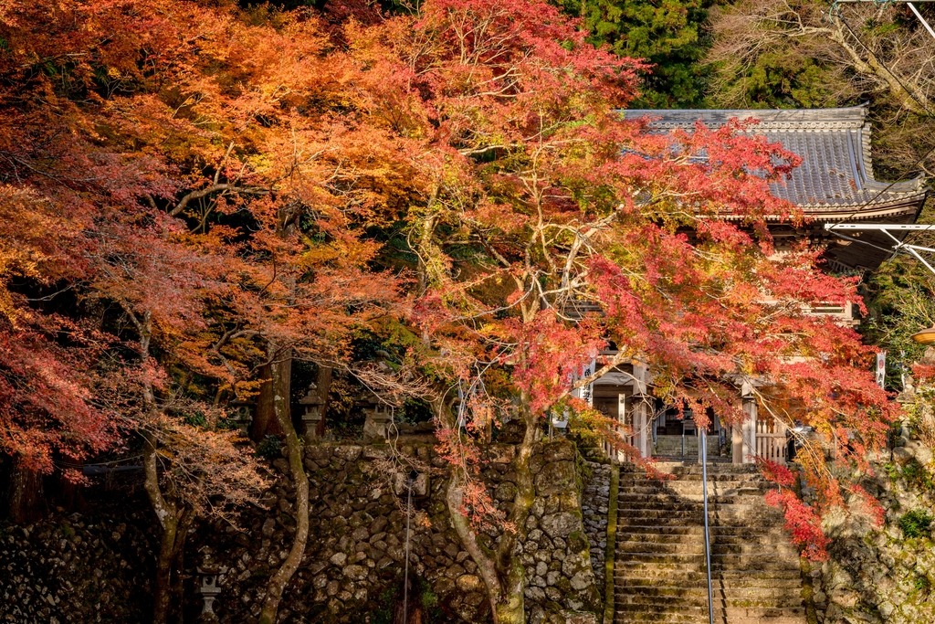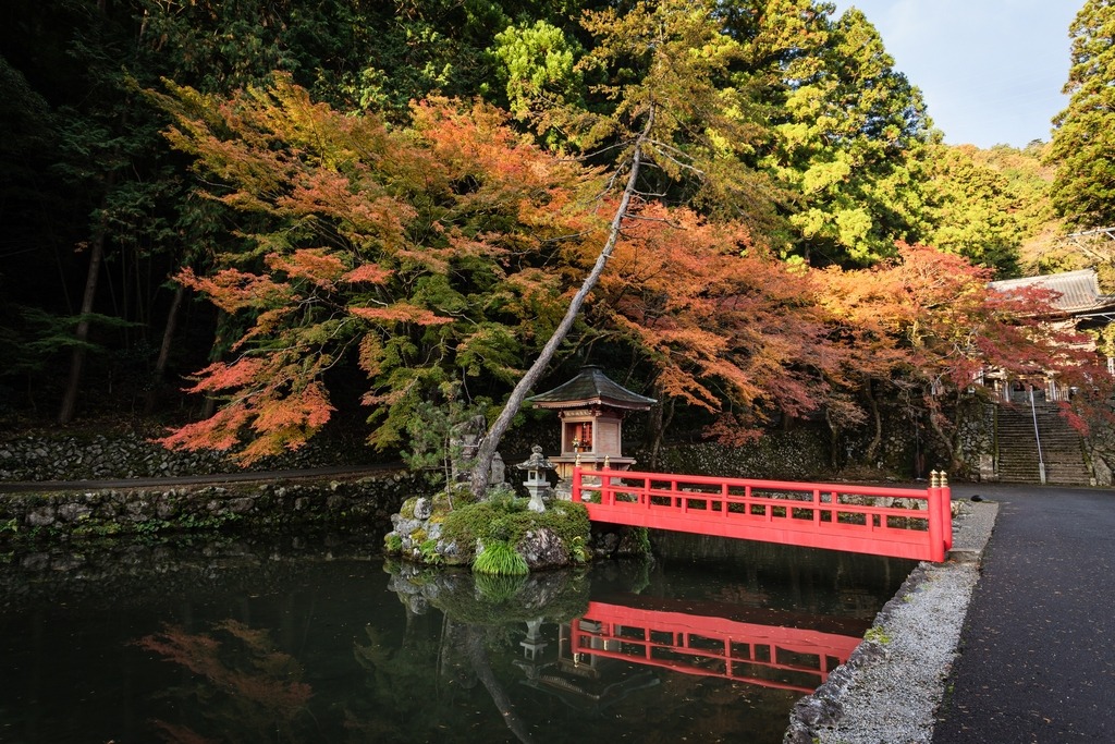 伊自良湖畔に佇む臨済宗妙心寺派の古刹寺院。堂々たる本堂は、近代和風建築として高く評価され、千手観世音菩薩が祀られています。境内には、県指定天然記念物である樹齢350年以上の「江戸彼岸桜」が春の訪れを知らせ、秋には池周辺や山門前のモミジの木が参拝者を出迎えてくれます。