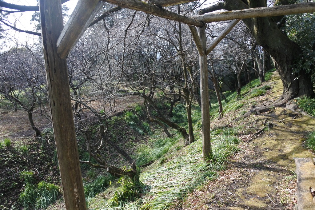 当時を偲ぶ土塁や空濠の一部が残っており、豪壮な居館の構えを伝えています。