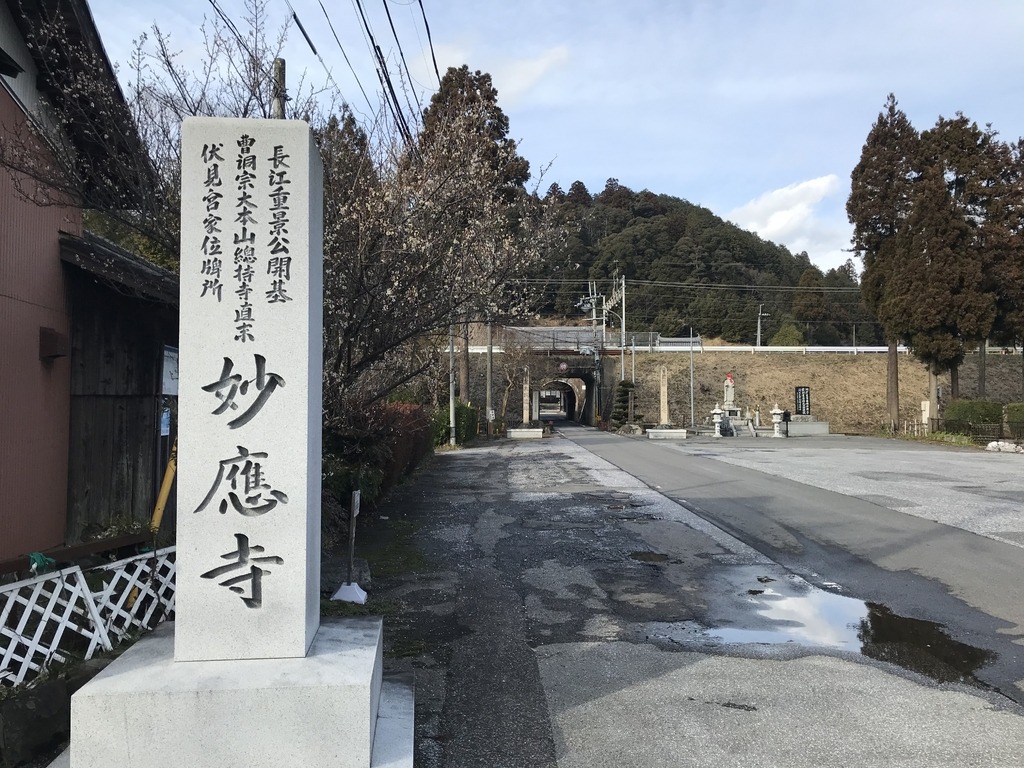 - 妙應寺の西北に県道229号線を挟んで駐車場有り(無料)