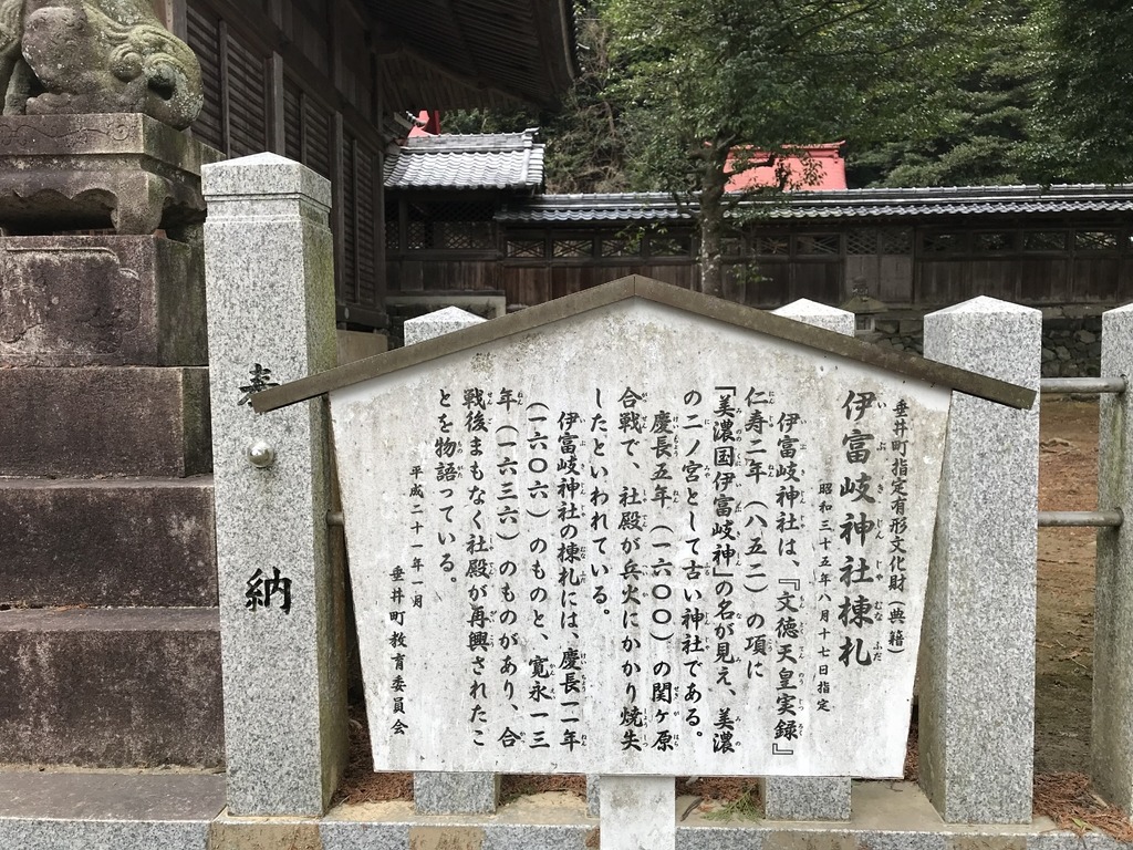 地方豪族伊福氏の祖神が祭られていた伊富岐神社は、仁寿2年(852年)地方神社から祭祀対象の官社になりました。
