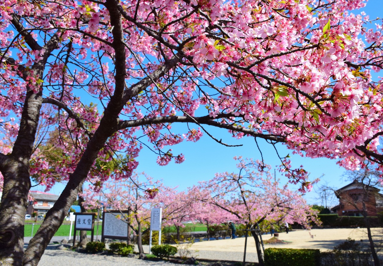 見ごろは3月上旬から中旬で、濃いピンク色の花が鮮やかに咲き誇ります。
