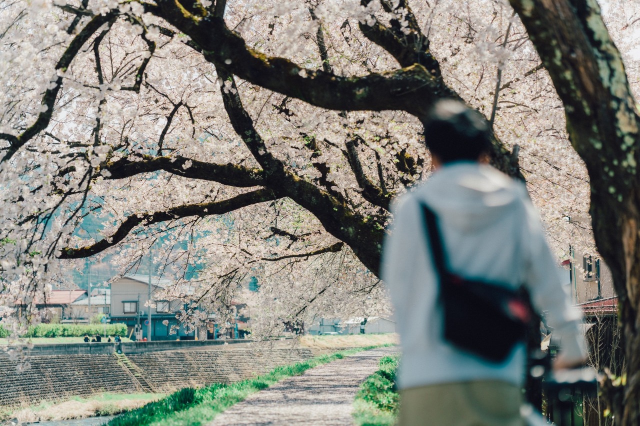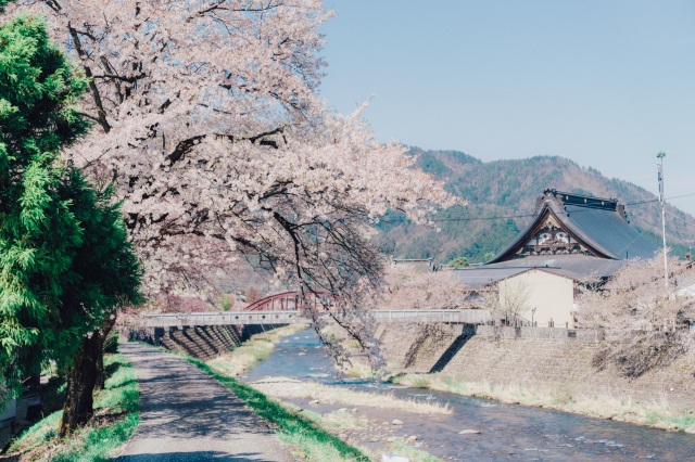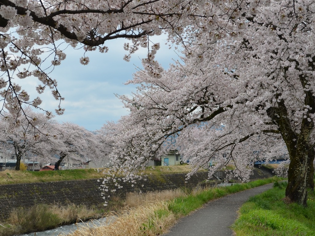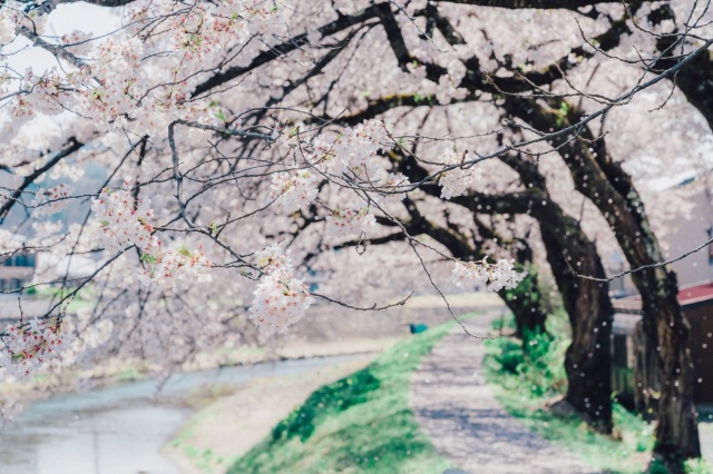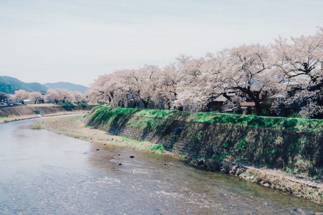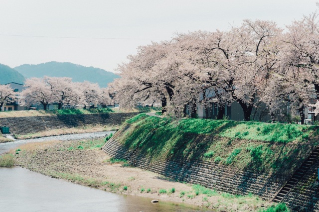 飛騨古川町内を流れる川、荒城川沿いの堤防に桜が植えられています。 古川小学校あたりから荒城川上流にかけて桜並木が続いています。