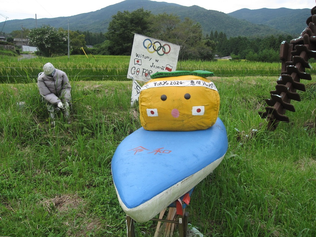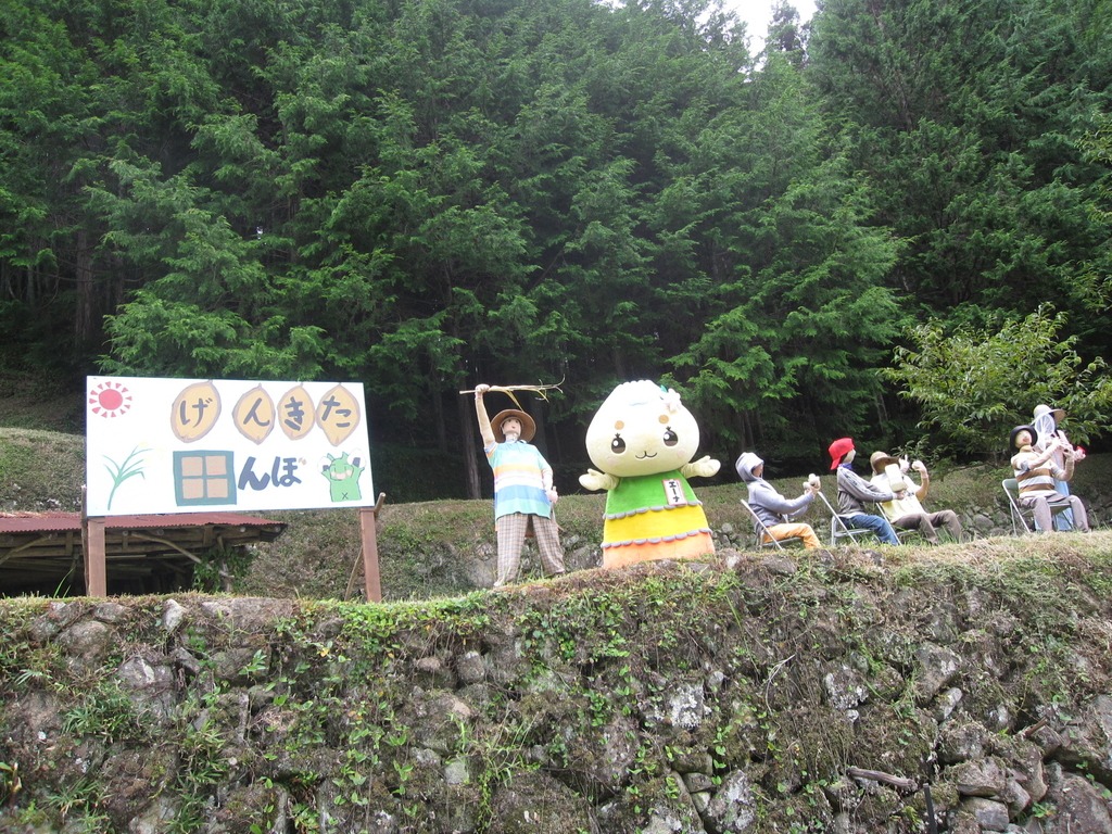 中には地元小学生が制作したものもあり、5年生の植えた田んぼを収穫までしっかりと見張っています。