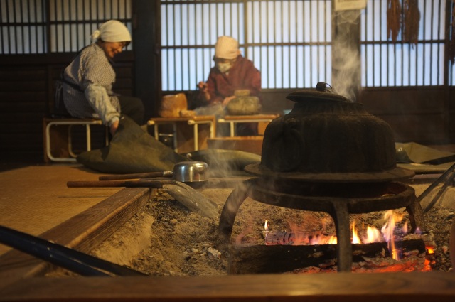 お餅の搗き込みからお召し上がりいただくまでを体験いただきます。臼一つ当たり60ヶの餅ができます。2臼まで同時進⾏が可能です。