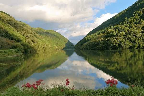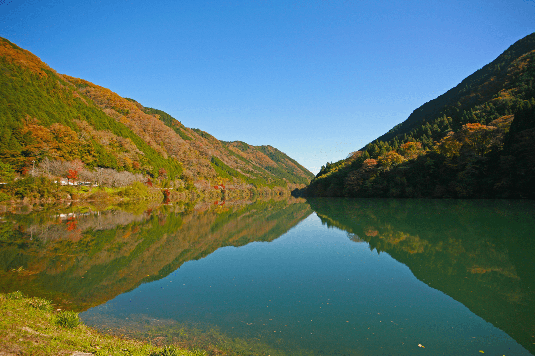 霧の発生しやすいV字谷の地形は、水墨画のような穏やかな渓谷美を誇っています。