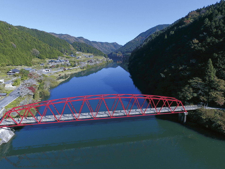 また、目印になっている赤い武並橋と視界いっぱいに広がる自然を眺めていると、時間がゆったりと流れているような気がしてきます。