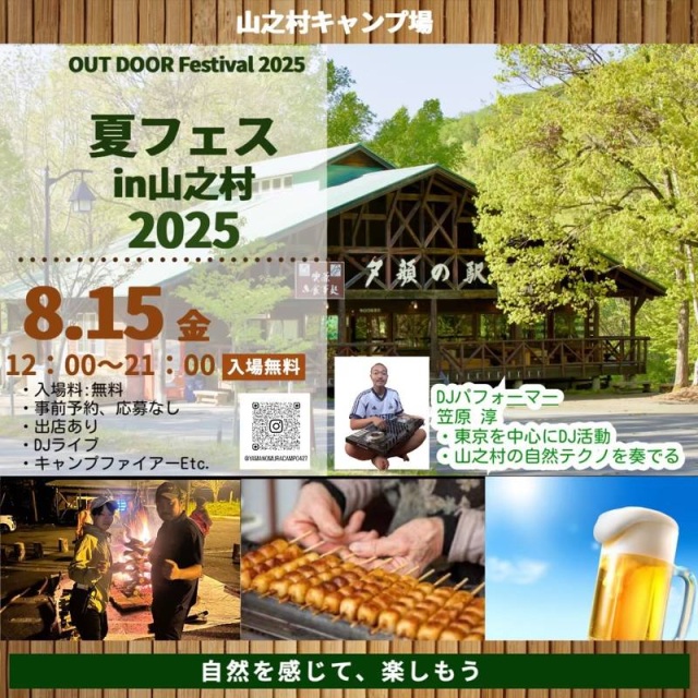 日本の里100選山之村。標高1,000mの森と谷川に囲まれた静かなキャンプ場です。