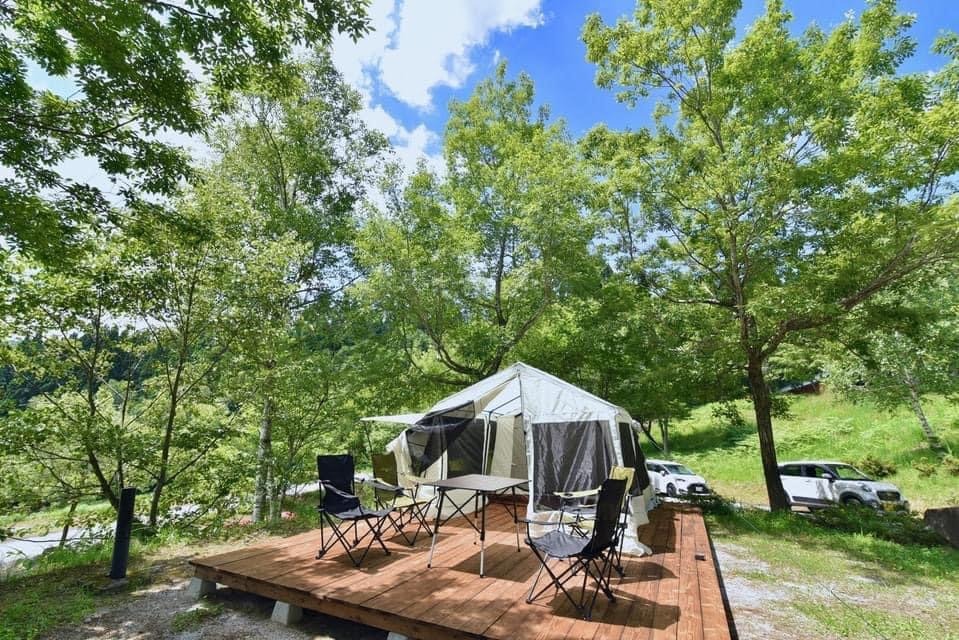 雄大な北アルプス連峰を眼前に望む、白樺林に囲まれた本格オートキャンプ場です。