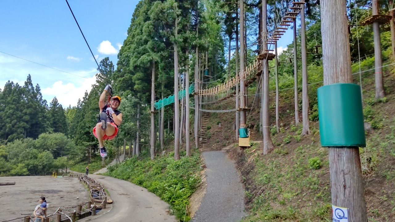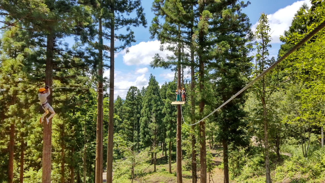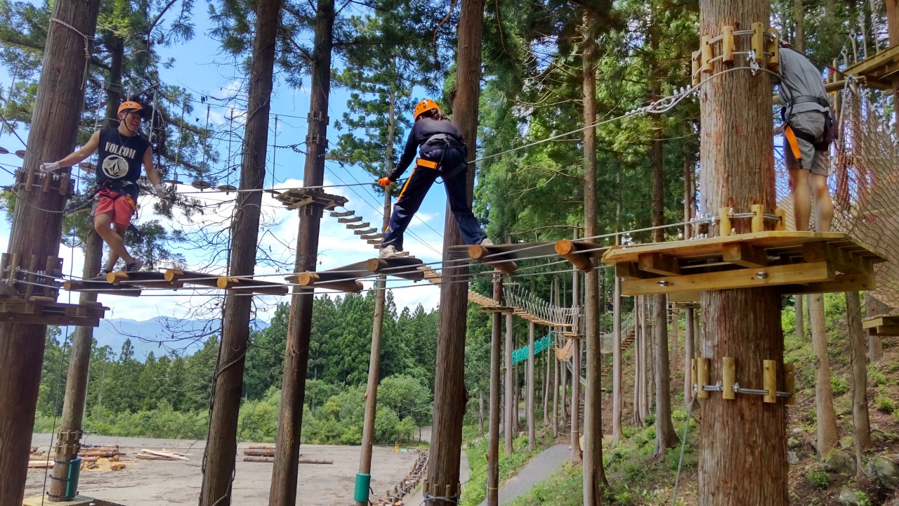 頭と体をフル活用し、子どもから大人まで郡上の豊かな自然をお楽しみいただける森林アドベンチャーです。