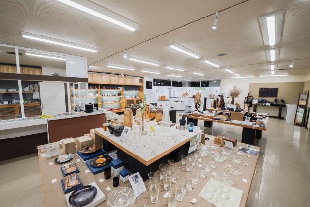 伝統的工芸品である飛騨春慶・一位一刀彫をはじめ、渋草焼・小糸焼などの陶磁器、宮笠・山中和紙などの郷土工芸品、ガラス・陶器・染物・木工小物などのクラフト作品を展示販売しています。