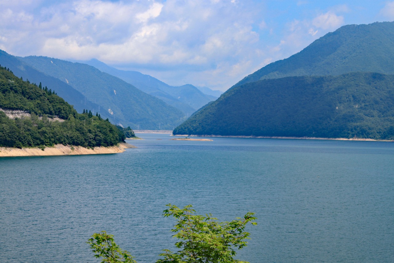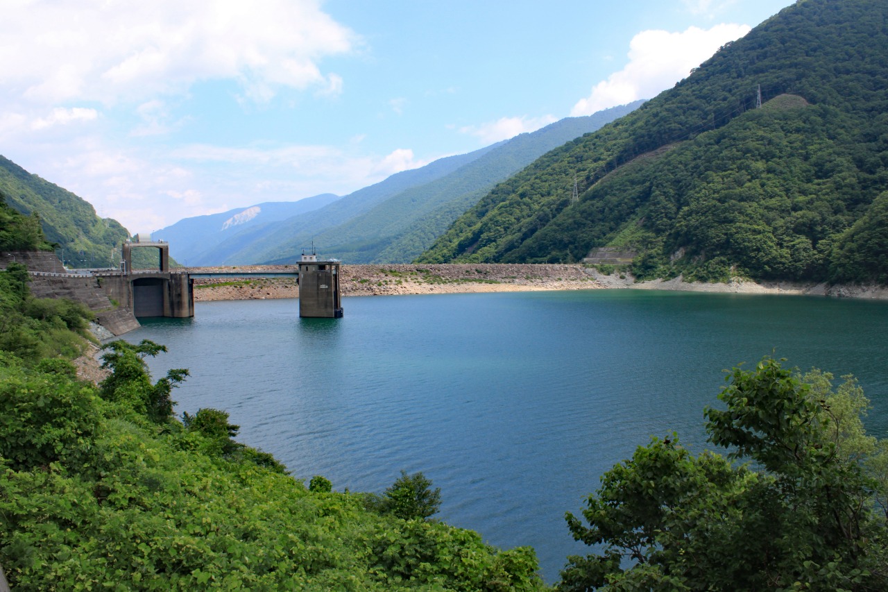 急峻な自然に佇む巨大なロックフィルダムの絶景