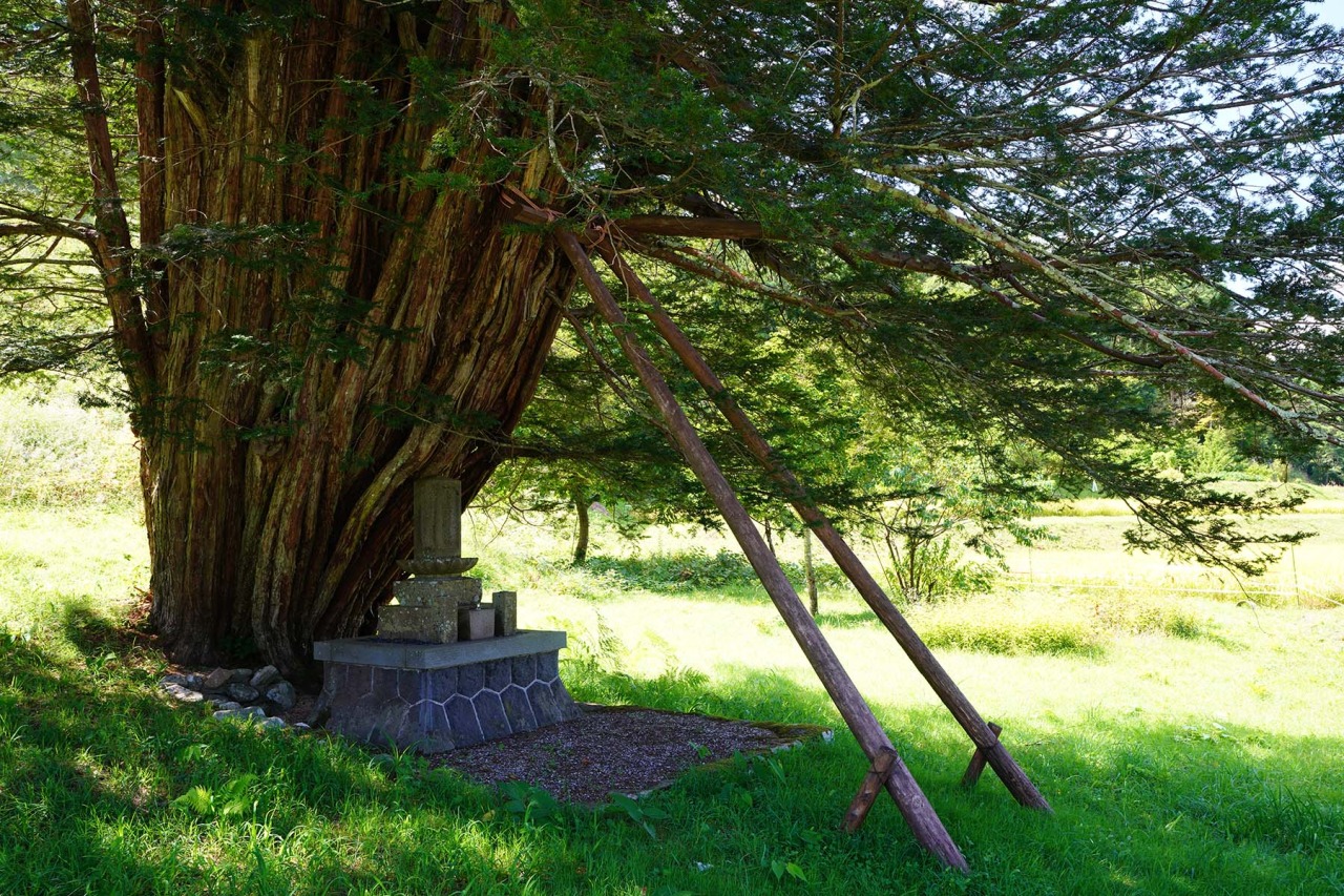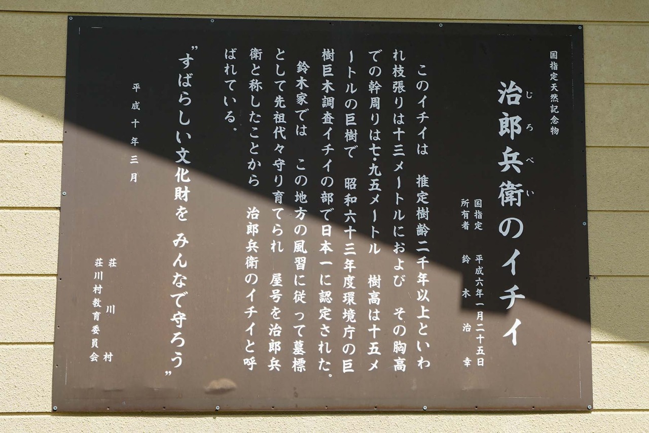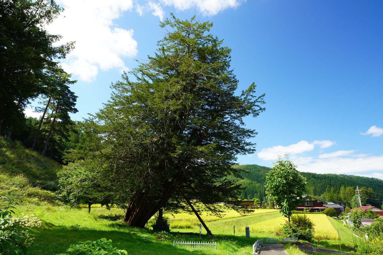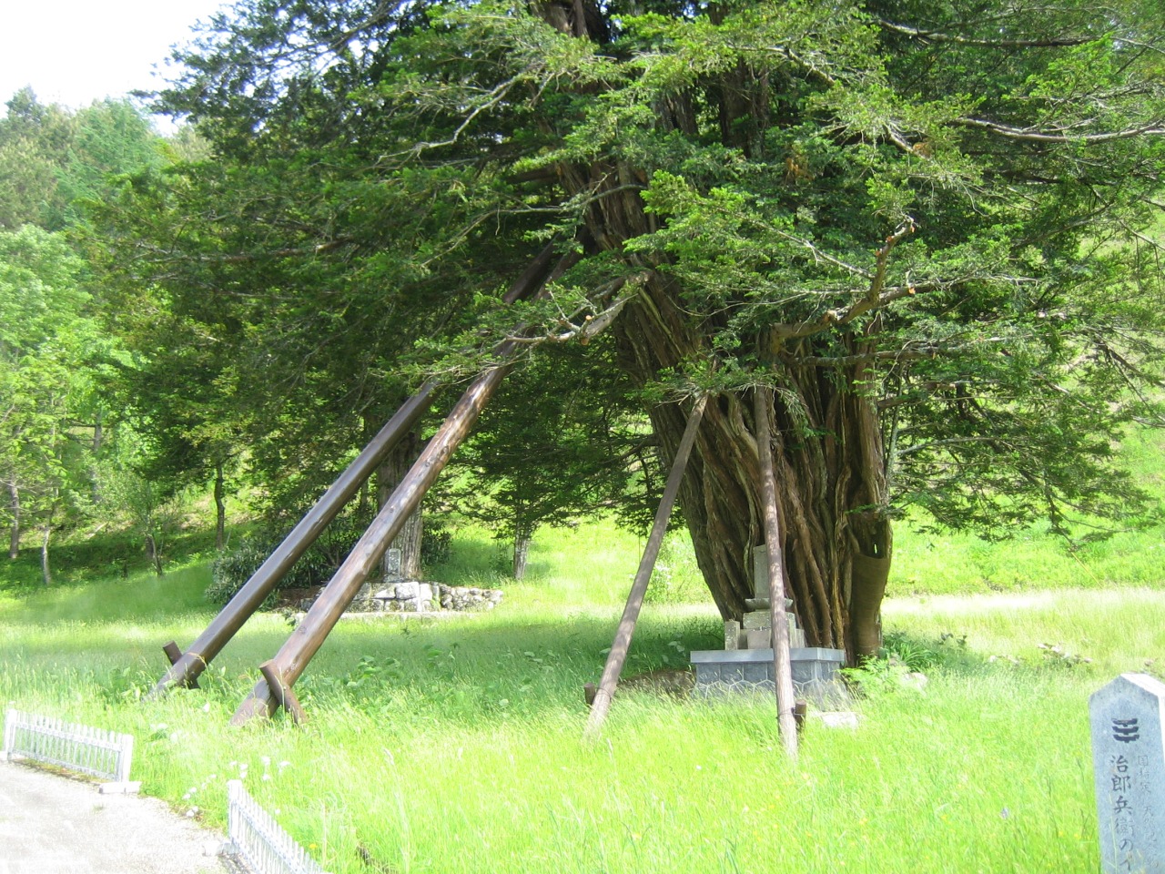 数年前より傾きはじめた為、地域住民の方が、ワイヤーで補強し、保護に努めています。豊かな自然に囲まれた荘川で育った「治郎兵衛のイチイ」。その姿は自然の素晴らしさを教えてくれる。