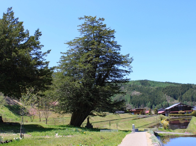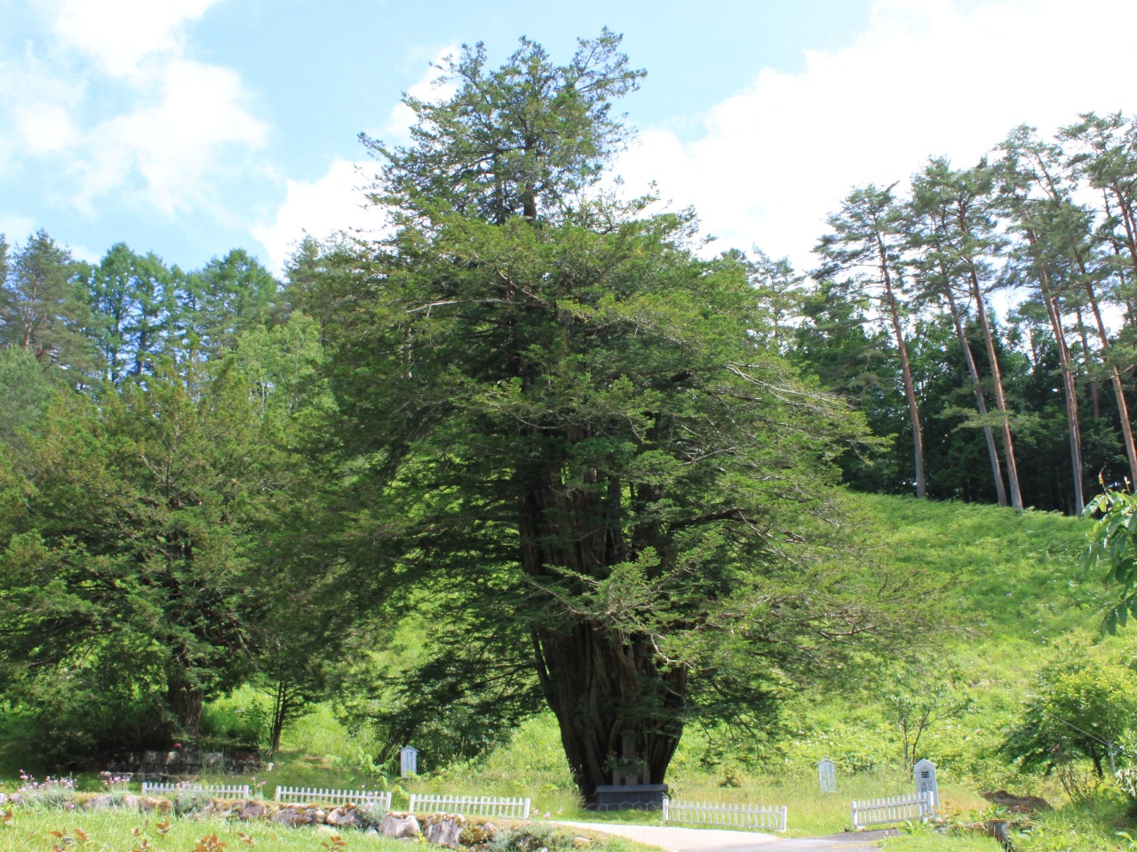 荘川町惣則地区、北野農村公園にあるイチイは、国指定天然記念物で、樹齢2000年ともいわれ、幹周囲は最大7.95mもあります。昭和63年度環境庁の巨樹、巨木調査イチイの部で幹周囲日本一となりました。