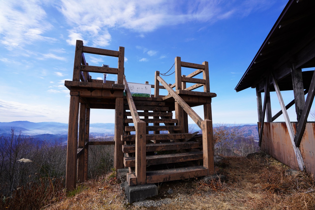 登山道が整備され、山頂には展望台があり、天気の良い日にここから眺める乗鞍岳は最高です。登山道は登りやすく、比較的距離も短いため夏から秋にかけて多くの人が登ります。ただし、登山道へは車でアプローチできますが、林道をとおるため路面状態も悪く冬期(降雪以降)は通行不能となるので注意が必要です。
