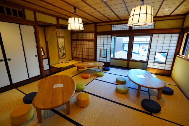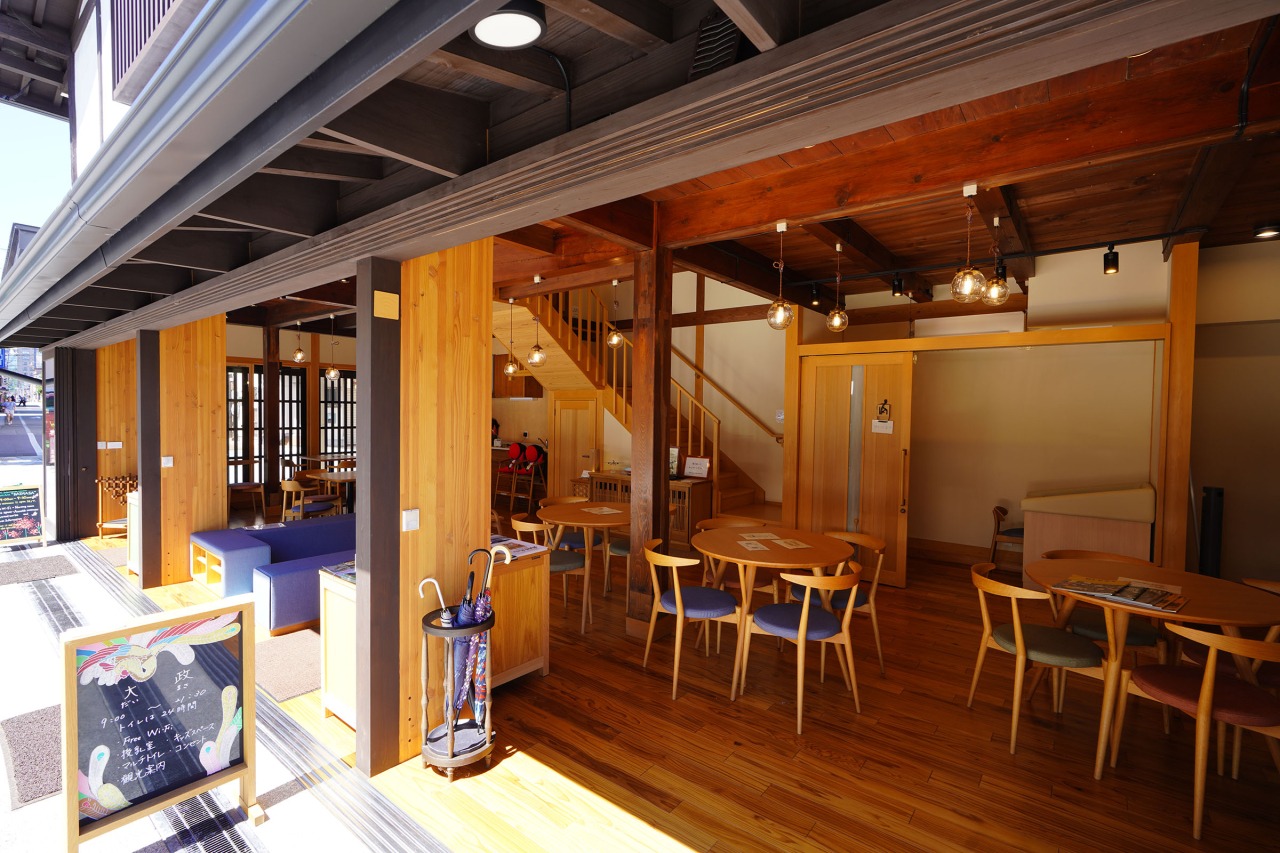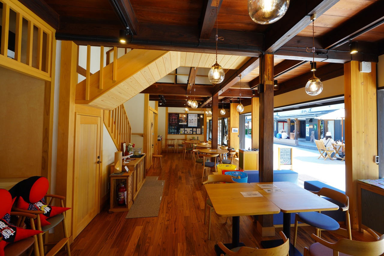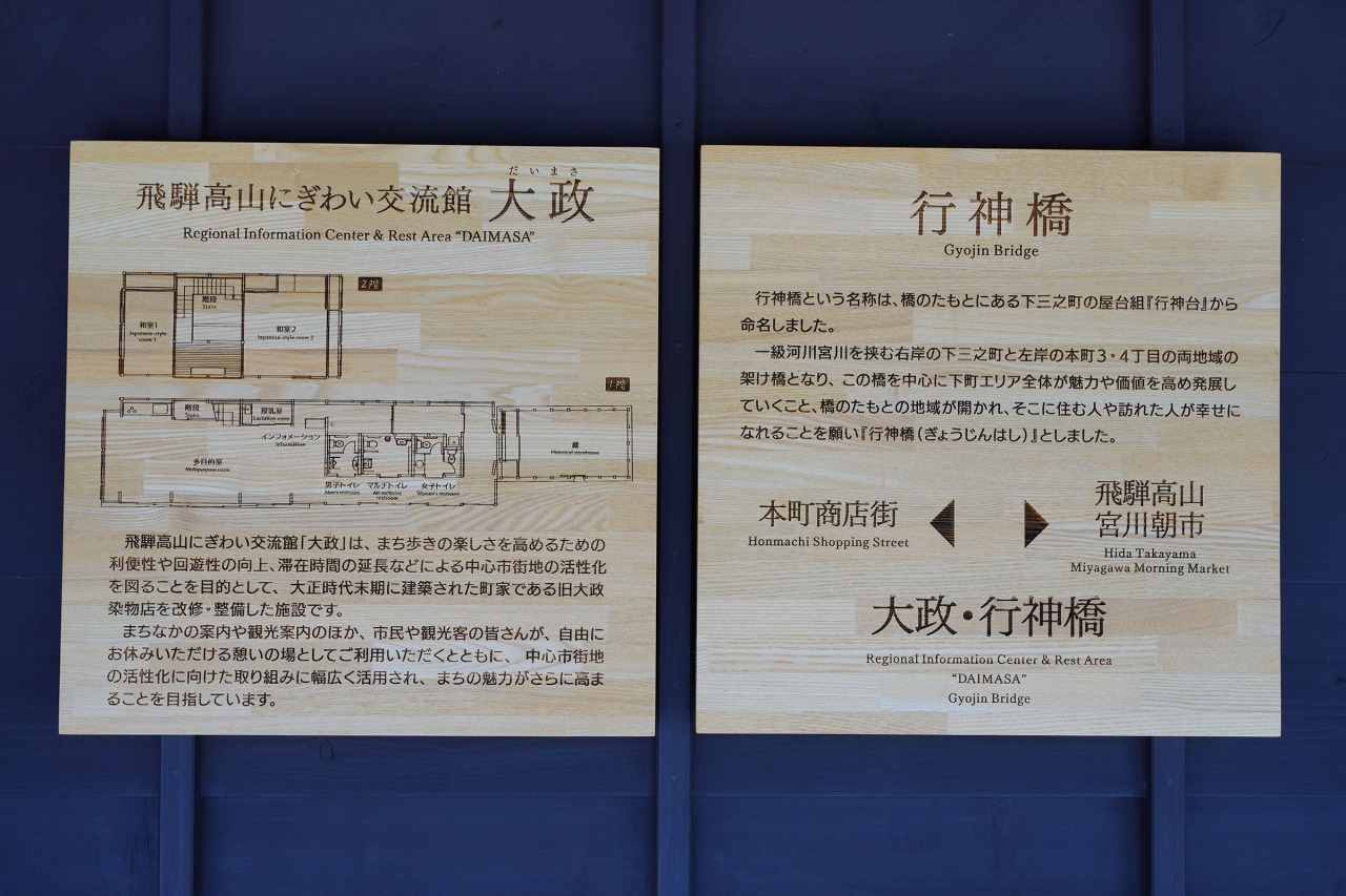 飛騨高山にぎわい交流館「大政」は、大正時代末期に建築された町家である旧大政染物店を改修・整備した施設です。宮川朝市と本町を繋ぎ、まち歩きに便利な位置にあります。無料の休憩所には飛騨の家具が備えられ、お子様が遊べるようなプレイスペースもあります。食べ物の持ち込みもOKです。授乳室、バリアフリーのトイレの他、2階には和室2部屋があり、無料で利用できます。