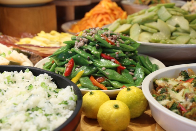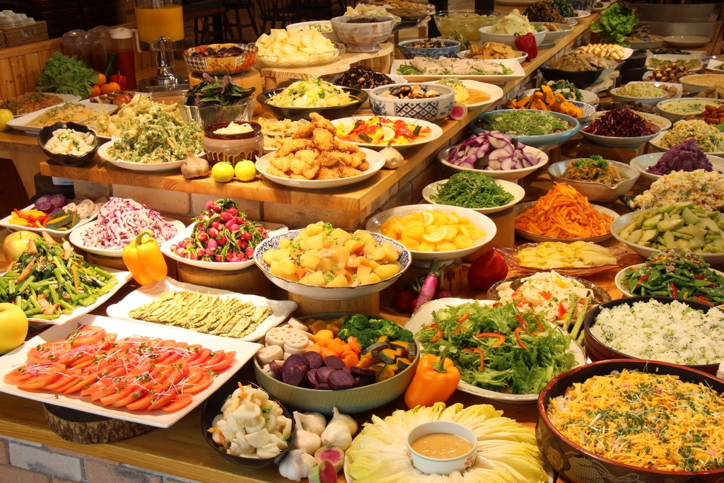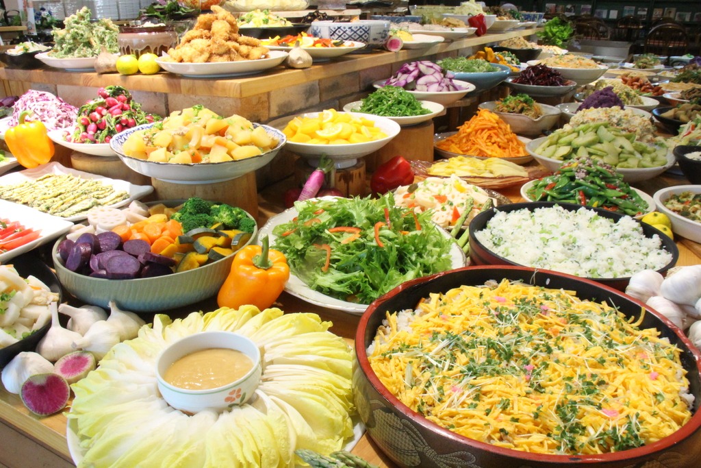 野菜中心でとてもヘルシーです。数種類の旬野菜を、バイキングで楽しむことができます。