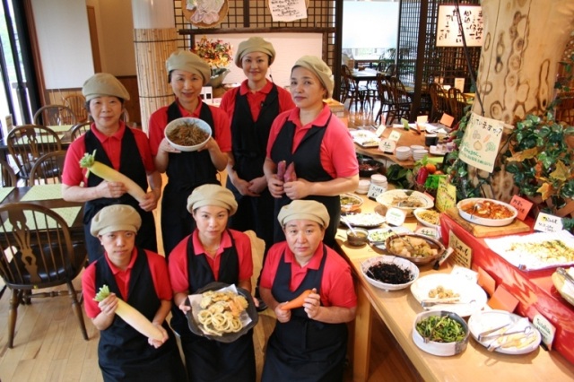 農家の元気なおばあちゃんたちが、地元の安心・安全な朝採り野菜を、すべて手作りで70種類ものメニューを提供。