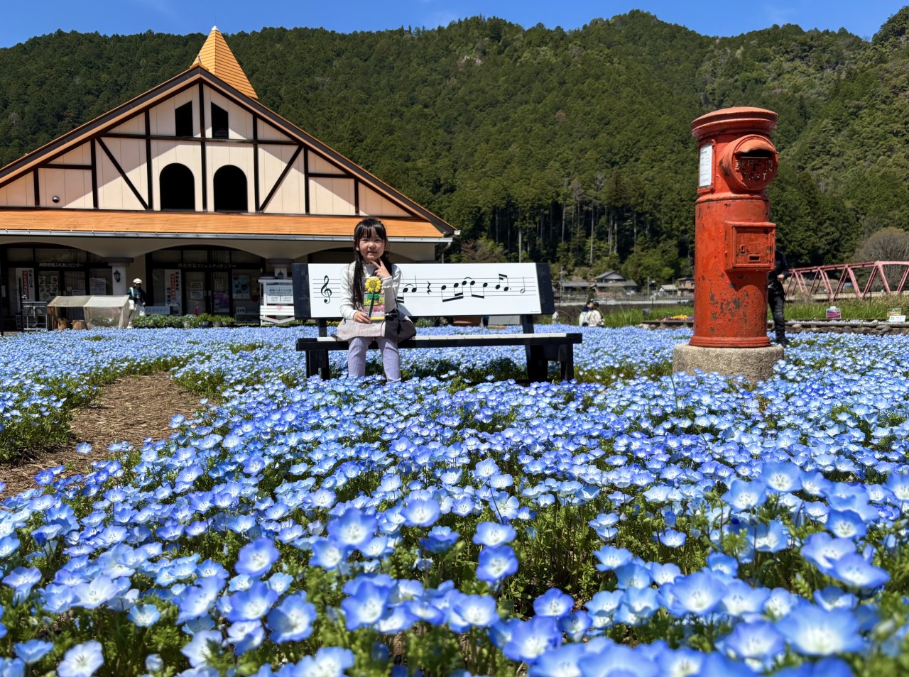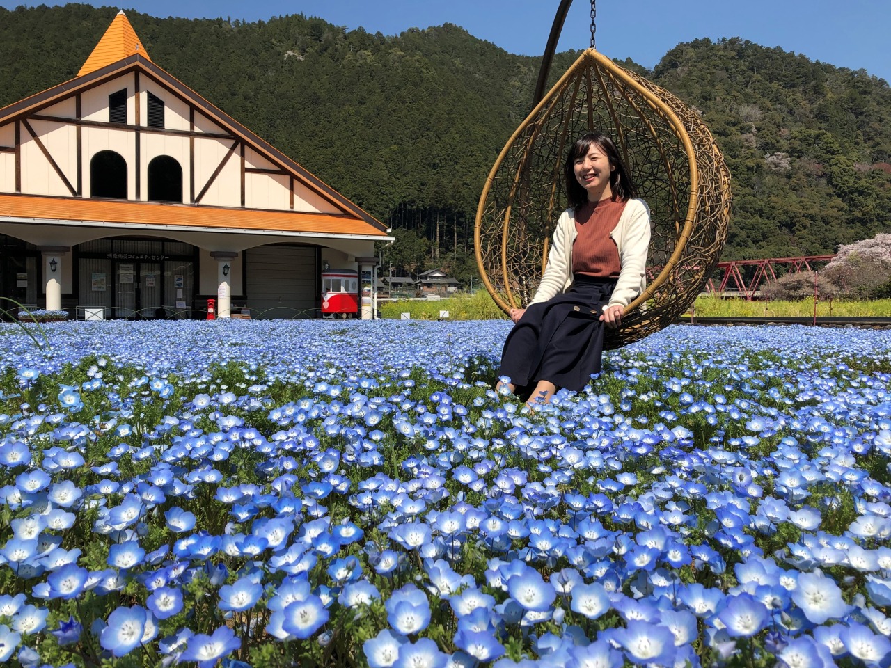 花畑には幸せ行き電車やレトロなポストなどの数々のオブジェが設置されており、映える撮影スポットが作られています。
