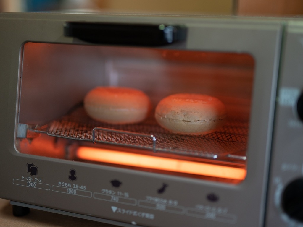 ほどよい甘さのアイスクリームを手焼きのもなかでサンドしたもなかアイスは、温めたオーブンで、20~30秒ほど焼くと、手作りもなかのパリッと香ばしさと冷たいアイスが口いっぱいに広がります。