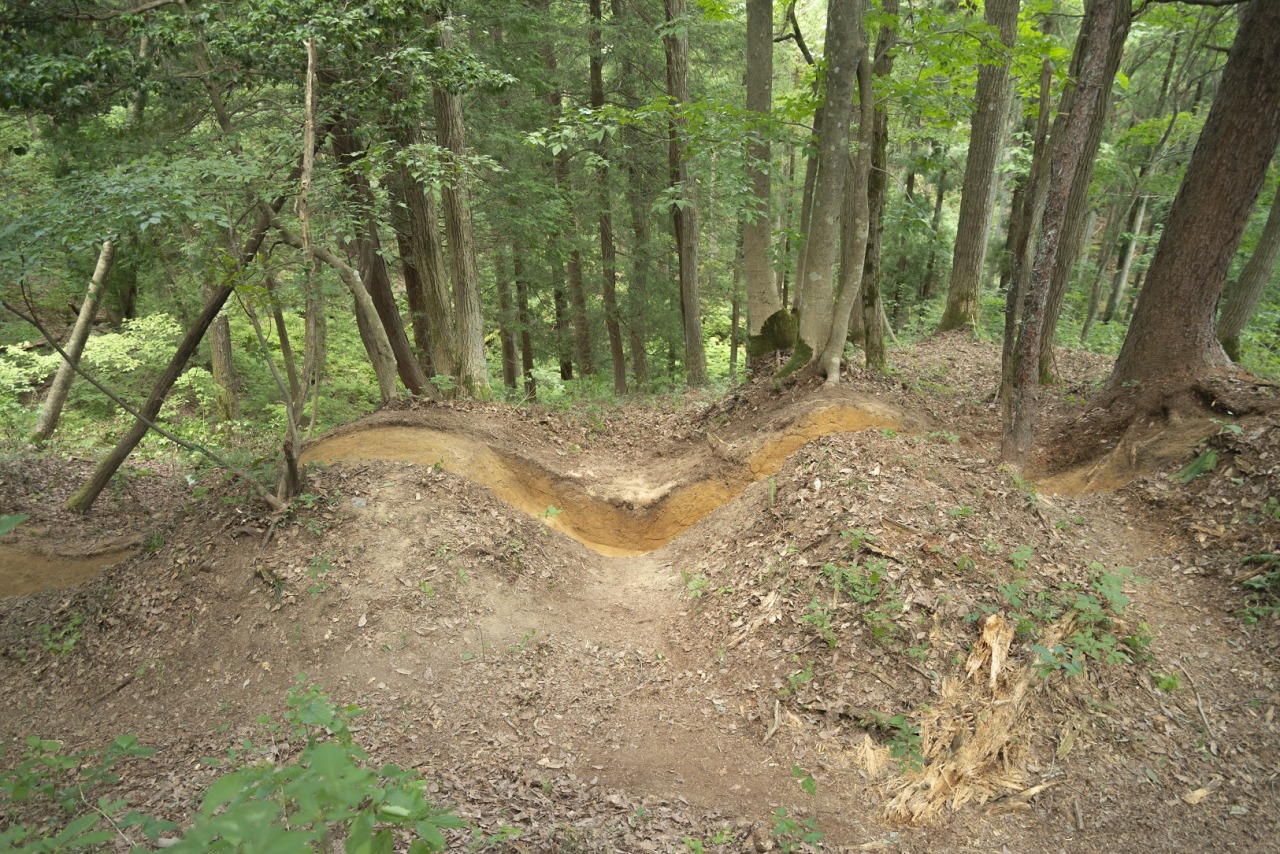 山頂には3つの大きな曲輪があり、それを守るように堀切・竪堀・切岸などの遺構が残ります。中でも畝状空堀群と呼ばれる連続した竪堀が特徴的で、特に峠方向を重点的に防御する構造です。これらは金森氏の侵攻に備えた三木氏の改修とも考えられています。