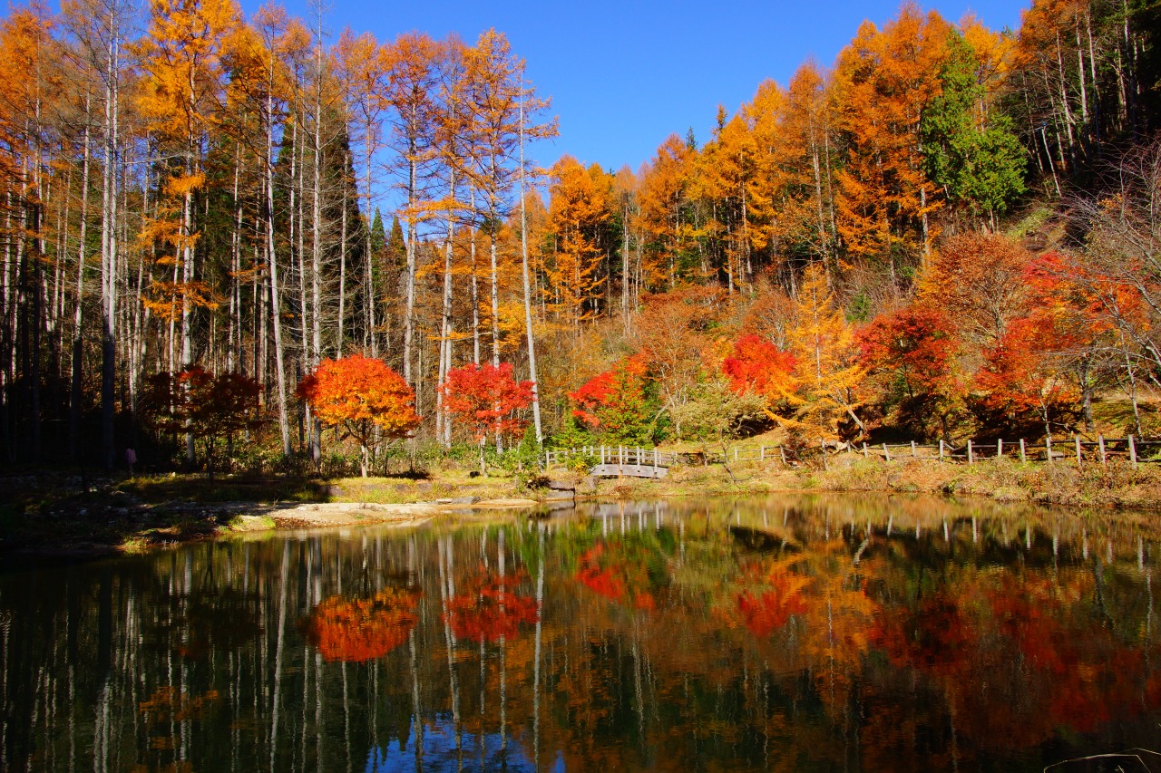標高1113m、飛騨・美濃せせらぎ街道で最標高の地点。日本海に注ぐ宮川水系と、太平洋に注ぐ飛騨川水系の分水嶺にあたり、周辺はブナやミズナラ、カエデ類が多く植生しています。季節によって違った表情を楽しむことができ、紅葉の時期は得も言われぬ美しさです。