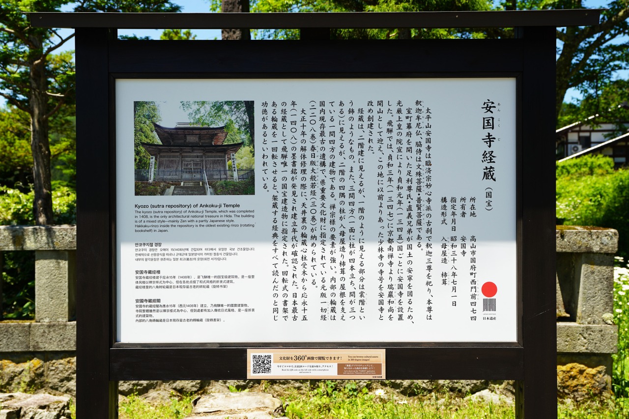 国府町西門前にある太平山安国寺は、臨済宗妙心寺派の古刹で、本尊は釈迦牟尼仏、脇侍を文殊菩薩、普賢菩薩とする三尊仏です。室町幕府を築いた足利尊氏・直義兄弟が、夢窓国師の勧めで国土の安寧を計るため、貞和元(1345)年に光厳上皇の院宣により、国ごとに安国寺と利生塔を設置。飛騨では以前からあった少林寺を指定し、寺号を安国寺と改めました。京都南禅寺から瑞厳和尚を開山として迎え、貞和3(1347)年に創建されました。