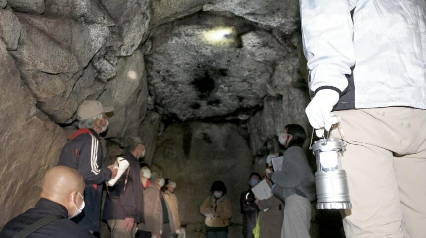 全長70メートルの前方後円墳で、飛騨地方では最大の古墳です。石室の高さは、3メートル、奥壁まで13.5メートルと岐阜県下最大の大きさです。付近の字名にちなんで、こう峠口古墳と呼ばれています。江戸時代に書かれた「飛州志」によると、江戸時代中期には、すでに開口しており盗掘されていたと思われます。埋葬者は、当時飛騨地方で勢力をもった豪族と考えられます。石室入口は、安全管理上施錠されています。