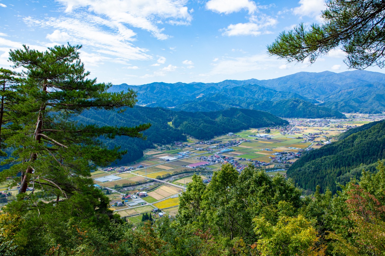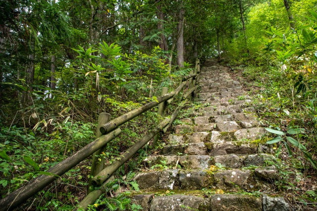 安国寺裏山に広がる約19ヘクタールの緑の中に、西国三十三か所札所巡りを擁する美しい森です。1000段の石段があり、頂上(標高約850m)の展望広場からは、乗鞍や御嶽、白山連峰などの大パノラマが満喫できます。眼下には、荒城川流域の見事な田園風景が広がります。約4.1kmの遊歩道が整備されており、一周約2時間のコースです。子どもからお年寄りまで気軽に森林散策が楽しめます。