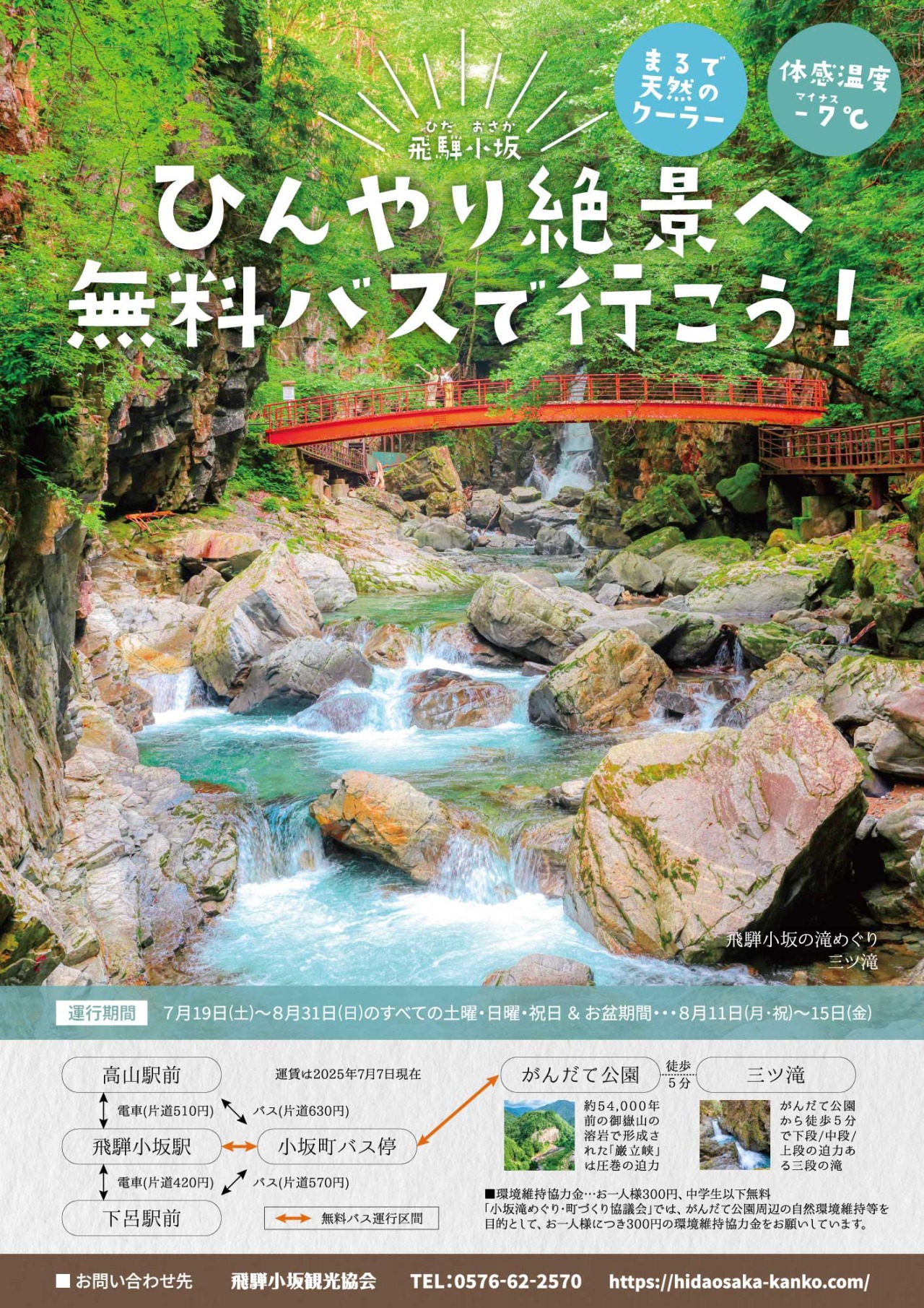 【終了しました】【期間限定】体感温度マイナス7℃ 飛騨小坂 ひんやり絶景へ無料バスで行こう!7/19(土)~8/31(日)の土日祝&お盆運行
