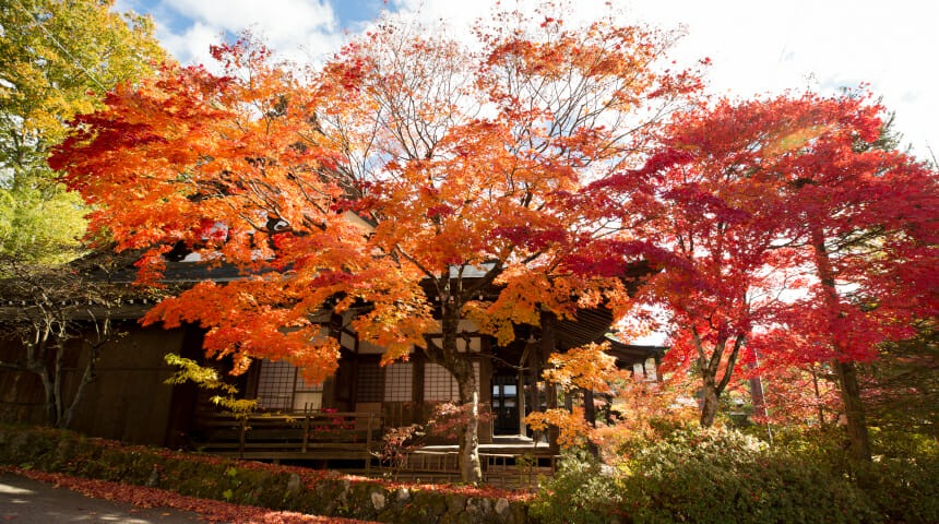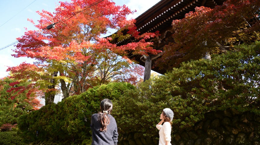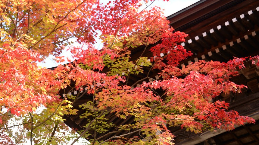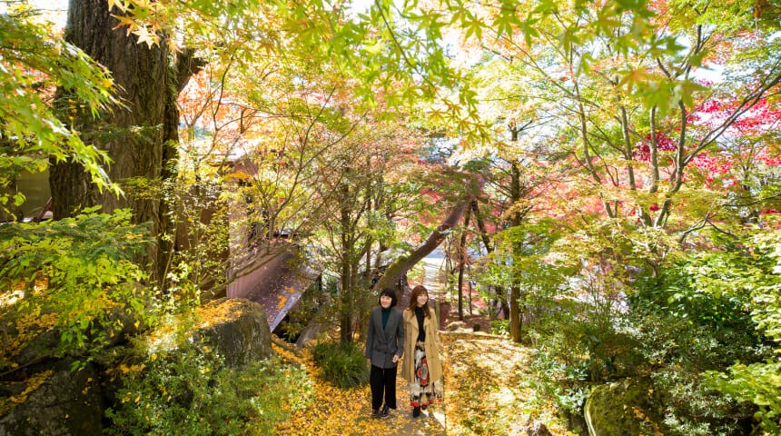 東山遊歩道の一角、紅葉が見事な寺院