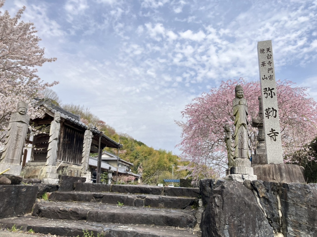 弥勒寺の桜(みろくじのさくら) 遺跡に春を彩る、桜とタンポポのやさしいコントラスト 関市にある弥勒寺では、例年4月上旬になると桜が見頃を迎えます。広々とした弥勒寺官衙遺跡群の風景の中で咲く桜は、歴史の面影を感じながらゆったりと春を楽しめるのが魅力です。また同じ時期には足元にタンポポも咲き、桜のやわらかなピンクとタンポポの鮮やかな黄色が美しいコントラストをつくります。春のやさしい色彩に包まれながら、のんびり散策を楽しめるスポットです。 エリア 岐阜・中濃 関市 カテゴリー 寺社・仏閣 桜の名所 Loading... フォトツアーを見る 基本情報 住所 〒501-3264 岐阜県関市池尻10-1 電話番号 0575-22-3232 問い合わせ先 弥勒寺